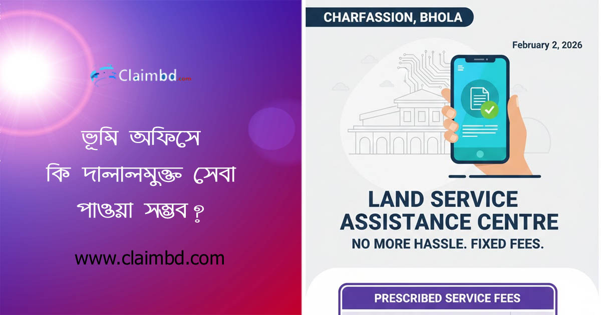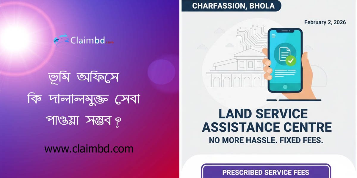 ভোলার চরফ্যাশনে সাধারণ মানুষকে হয়রানিমুক্ত এবং স্বচ্ছ ভূমি সেবা প্রদানের লক্ষ্যে কাজ শুরু করেছে 'ভূমি সেবা সহায়তা কেন্দ্র' (LSFC)। সাধারণ নাগরিকরা যাতে দালালদের খপ্পরে না পড়ে এবং সঠিক মূল্যে সরকারি সেবা পান, সেজন্য সরকার নির্ধারিত নির্দিষ্ট ফি সম্বলিত একটি চার্ট জনসম্মুখে প্রকাশ করা হয়েছে।সহকারী কমিশনার (ভূমি) কার্যালয় সূত্রে জানা গেছে, ডিজিটাল ভূমি ব্যবস্থাপনার অংশ হিসেবে এই সহায়তা কেন্দ্রগুলো স্থাপন করা হয়েছে। এখানে নাগরিকরা ই-নামজারি থেকে শুরু করে ভূমি উন্নয়ন করসহ যাবতীয় সেবা অনলাইনে সম্পন্ন করার কারিগরি সহায়তা পাবেন।নির্ধারিত ফি-র তালিকা:সহায়তা কেন্দ্র থেকে প্রাপ্ত তথ্য অনুযায়ী, বিভিন্ন সেবার জন্য সরকার নির্ধারিত ফি নিচে দেওয়া হলো:সেবার ধরননির্ধারিত ফি (টাকা)ই-নামজারি (Mutation)১,১৭০ টাকা (সর্বমোট)ভূমি উন্নয়ন কর (Land Tax) নিবন্ধন২০ টাকাখতিয়ানের কপি (পর্চা) আবেদন৫০ টাকাম্যাপ (Map) আবেদন৫০ টাকাবিবিধ আবেদন২০ টাকাদ্রষ্টব্য: ই-নামজারির ১,১৭০ টাকার মধ্যে রয়েছে—কোর্ট ফি ২০ টাকা, নোটিশ জারি ফি ৫০ টাকা, রেকর্ড সংশোধন ফি ১০০০ টাকা এবং খতিয়ান ফি ১০০ টাকা। এই ফি শুধুমাত্র অনলাইনের মাধ্যমে পরিশোধযোগ্য।হয়রানি বন্ধে বিশেষ সতর্কতাকর্তৃপক্ষ জানিয়েছেন, এই নির্ধারিত ফি-র বাইরে কোনো প্রকার অতিরিক্ত অর্থ লেনদেন দণ্ডনীয় অপরাধ। নাগরিকরা যাতে প্রতারিত না হন, সেজন্য প্রতিটি কেন্দ্রে ১৬১২২ (ভূমিসেবা হটলাইন) নম্বরটি দৃশ্যমান রাখা হয়েছে। কোনো কর্মচারী বা সহায়তাকারী অতিরিক্ত অর্থ দাবি করলে সরাসরি এই নম্বরে বা উপজেলা ভূমি অফিসে অভিযোগ করার পরামর্শ দেওয়া হয়েছে।সেবাগ্রহীতাদের প্রতিক্রিয়াচরফ্যাশনের স্থানীয় একজন বাসিন্দা বলেন, "আগে নামজারি বা পর্চা তুলতে গেলে কত টাকা লাগবে তা নিয়ে ধোঁয়াশা থাকত। এখন প্রকাশ্যে চার্ট টাঙিয়ে দেওয়ায় আমরা বুঝতে পারছি সরকারি খরচ কত। এতে বাড়তি টাকা চাওয়ার সুযোগ কমেছে।"উপজেলা ভূমি অফিস জানায়, স্মার্ট বাংলাদেশ বিনির্মাণে এবং ভূমি সেবাকে মানুষের দোরগোড়ায় পৌঁছে দিতে এই উদ্যোগ কার্যকর ভূমিকা রাখছে। এখন থেকে যে কেউ এই সহায়তা কেন্দ্রে এসে সামান্য ফি-র বিনিময়ে তাদের প্রয়োজনীয় অনলাইন আবেদনগুলো নির্ভুলভাবে সম্পন্ন করতে পারবেন।
